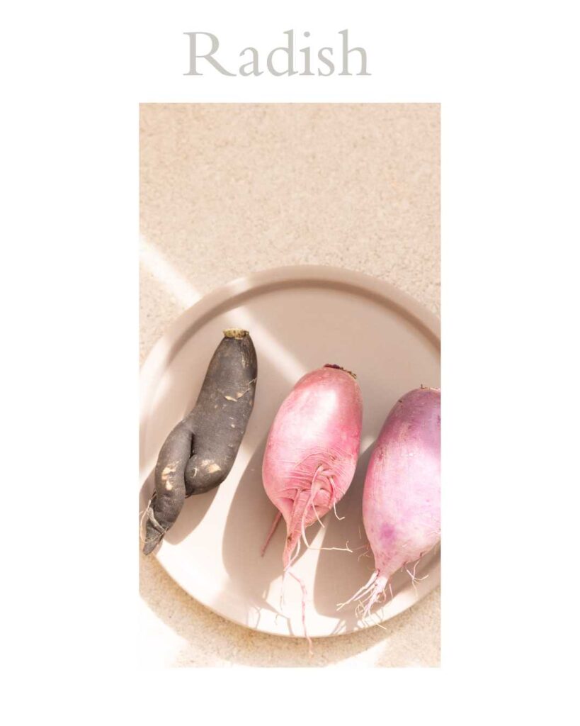 Growing underground, the radish absorbs minerals directly from the soil, concentrating strength before ever being seen.